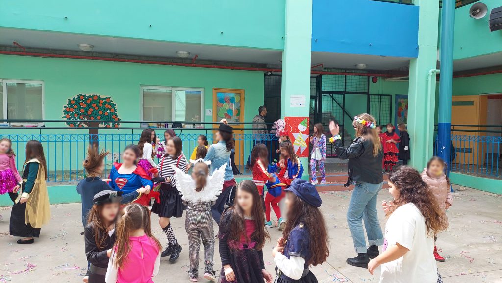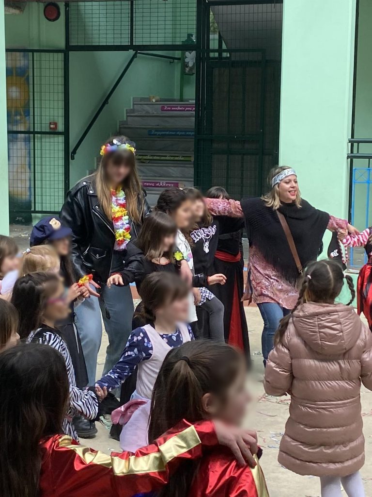 Οι μαθητές προσήλθαν το πρωί μεταμφιεσμένοι και τις 2 τελευταίες ώρες στήθηκε ένα όμορφο αποκριάτικο πάρτι στο προαύλιο με πολύ χορό και τραγούδι.