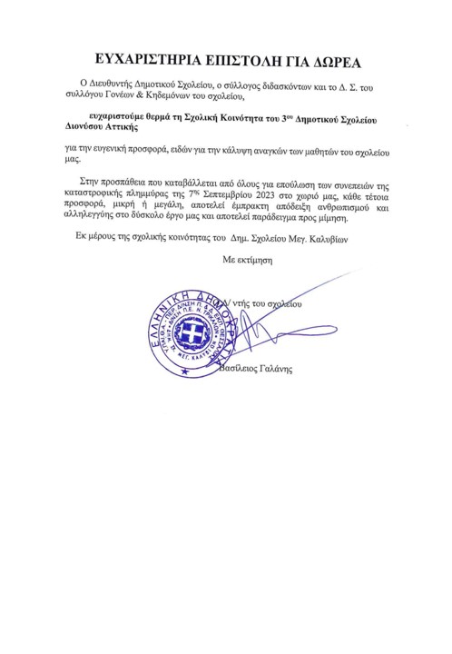 Με επιτυχία ολοκληρώσαμε τη δράση στήριξης του Δημοτικού Σχολείου των Μεγάλων Καλυβίων Τρικάλων η οποία υλοποιήθηκε σε συνεργασία με το Σύλλογο διδασκόντων του σχολείου μας.